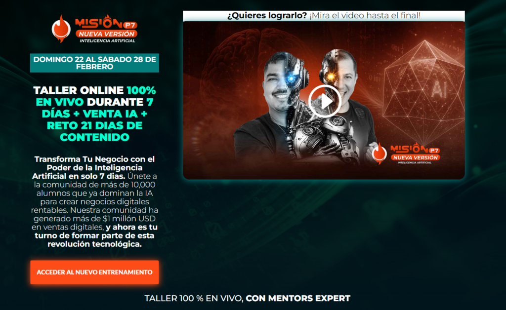 Misión P7 en las Últimas Inscripciones restantes con hasta 80% descuento! Haz tu inscripción hoy con el precio más bajo y garantiza beneficios exclusivos.